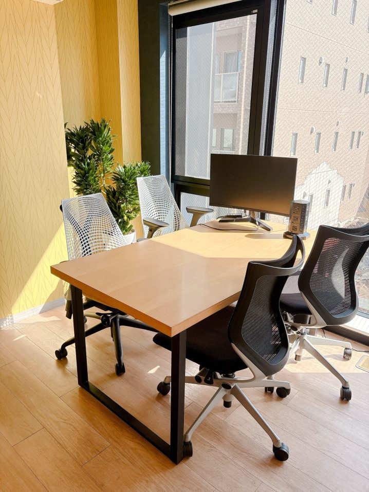 2025.10.20 施設紹介 スタッフ 会議室1 Colonyには会議室が2つあります。会議室1についてご紹介します🌸モニターを常設しているのでWEBミーティングや、PCとつないで資料を映し出すこともできます。来客対応にもぴったりです。 白い壁は実はホワイトボードになっているんです。無駄のない設計となっています。 フリースペースから見る会議室1です。日が当たり、明るいです。 電源もたくさんあるので、複数人でも安心してPCを使えます。 働きやすさ、効率と生産性を重視したColonyならではの会議室です☺