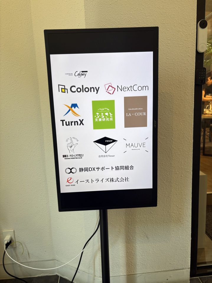 2025.10.03 お知らせ スタッフ デジタルサイネージ Colony の入り口にデジタルサイネージを置きました✨数秒毎に画面が切り替わり、メンバー様の会社ロゴが流れます。 なんとこのデジタルサイネージはColony のソフトウェア部門の自社開発商品なんです☺ お好きなデータをGドライブにアップすれば反映される仕組みになっています。 かっこいいですよね✨30秒程度の動画も流せますので、今後新たにアップしたらお知らせいたします!